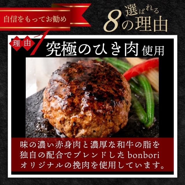 ボンボリ の ハンバーグ は ふっくら 焼きあがり 肉汁 たっぷり の 濃厚 な味 が 特徴 で 肉フェス などへ出展し 行列 を 作った 超人気 ハンバーグ です。