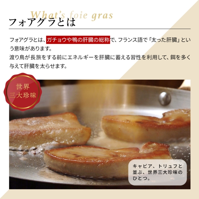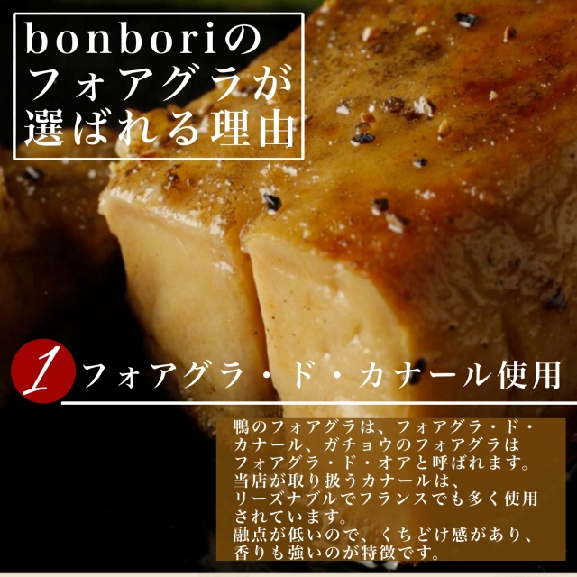 世界3大珍味 とも言われる Foie Gras は アヒル や ガチョウ の 肝臓 です bonbori で 販売している フォアグラ は 鳥 の中で最も お肉 が 美味しい と言われている カナール ( 鴨 ) の Foie Gras です