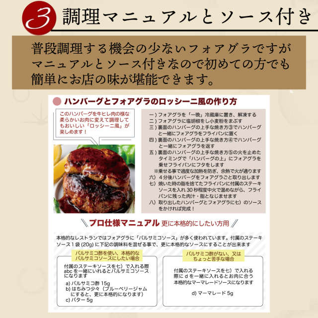 この 濃厚 な Foie gras が 誰でも 楽しめる様に 親切な 調理マニュアル を お付けしております おうちごはん での 贅沢 ディナー や ちょっとしたお祝い 贈り物 に プレゼント してみてはどうでしょうか? ソースと調理レシピ付なので グルメな方や豪華な お家ご飯 用 としても オススメ です